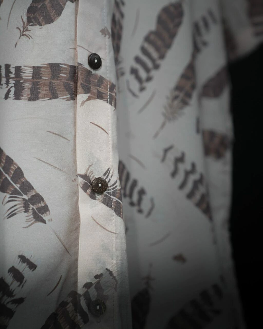 Color tela: Beige con plumas en tonos marron