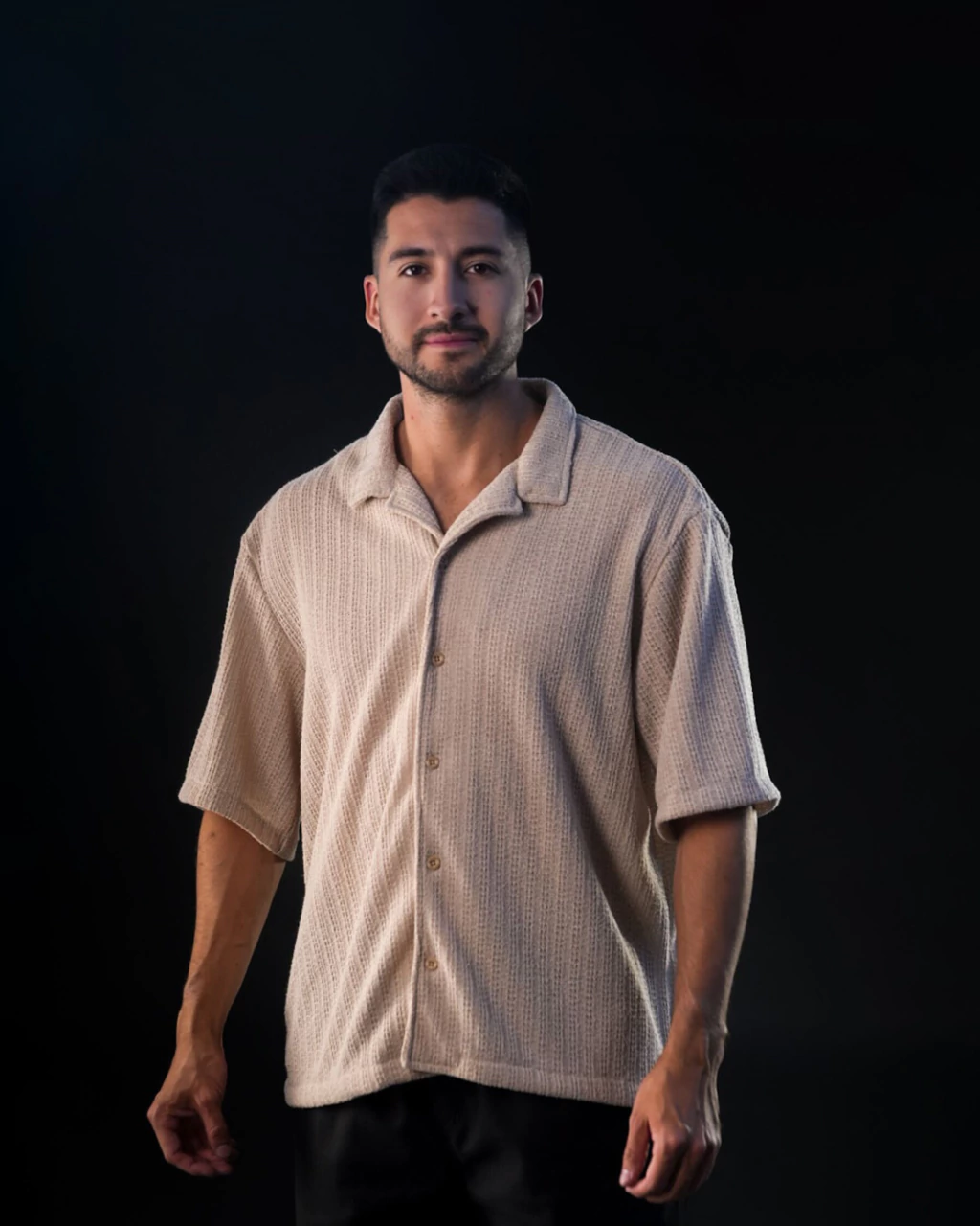 ¡Sumá a tu guardarropa una prenda única y atemporal con la Camisa Tejida Oversize Carmelo!